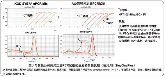 通过抑制引物二聚体等非特异性反应,在低拷贝区域也可进行广泛的定量检测。同时通过使用本公司荧光定量PCR用cDNA合成试剂盒「ReverTra Ace® qPCR RT 系列」,可以进行稳定的检测。