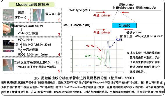 通过改变两种扩增产物的扩增长度,只需引物的Tm值设计成不同,即可在单管中进行mouse tail的基因分型。(参照上一个特征)。