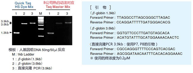 结果显示,使用Quick Taq HS Dye Mix时,可进行高效率且高特异性地扩增。
