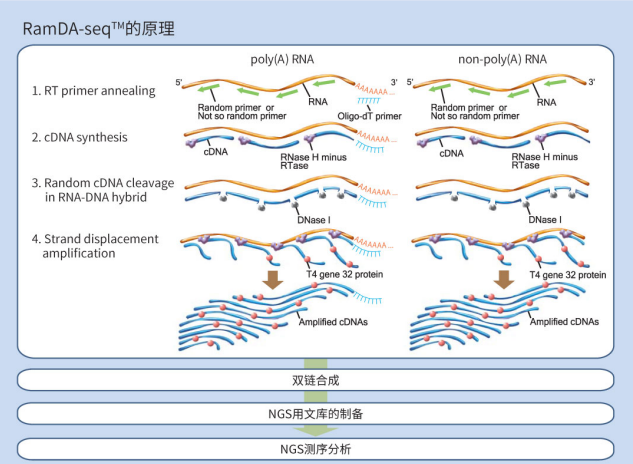 RamDA-seqTM是由理化学研究所生命机能科学研究中心生物信息学研究开发小组开发的1细胞全长total RNA测序法「Random Displacement Amplification Sequencing」的简称。