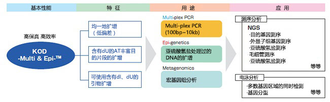 以前的高保真性PCR酶,使用含有I或U的引物时扩增困难,KOD -Multi & Epi- 则可以使用这类引物进行分析。