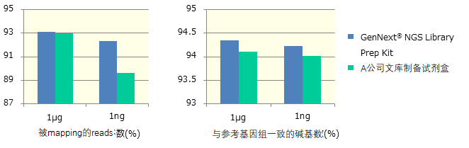结果显示,使用GenNext® NGS Library Prep Kit比使用其他公司的试剂,得到了更好的mapping效率与更低的错误率。