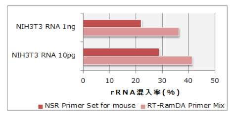 Total RNA量 10pg、1ng都是在使用 NSR Primer Set时,rRNA混入率较低。