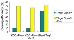 另一方面对Blend Taq的扩增产物进行克隆时,用TArget CloneTM -Plus-相比,虽然效率有很大下降,但是使用TArget Clone也可以高效率地进行TA克隆。